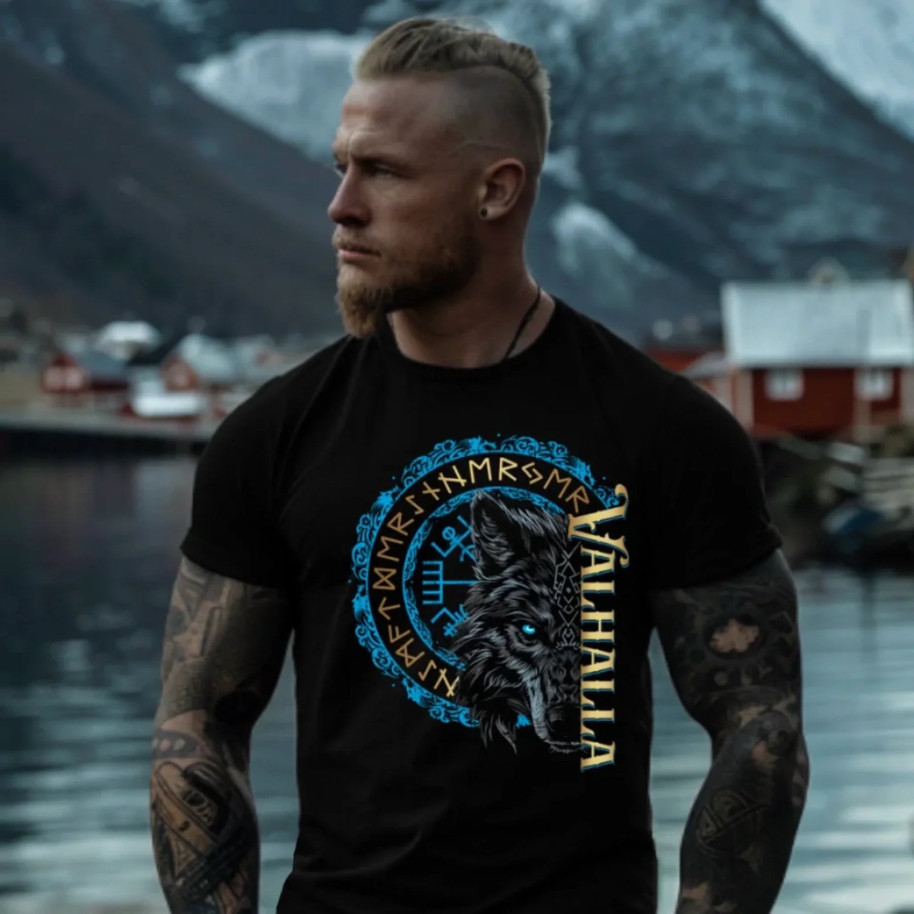 Trage dieses T-Shirt und fühle die wilde Freiheit und Stärke der nordischen Wölfe, die seit Jahrhunderten die Fantasie und Ehrfurcht der Menschen beflügeln.