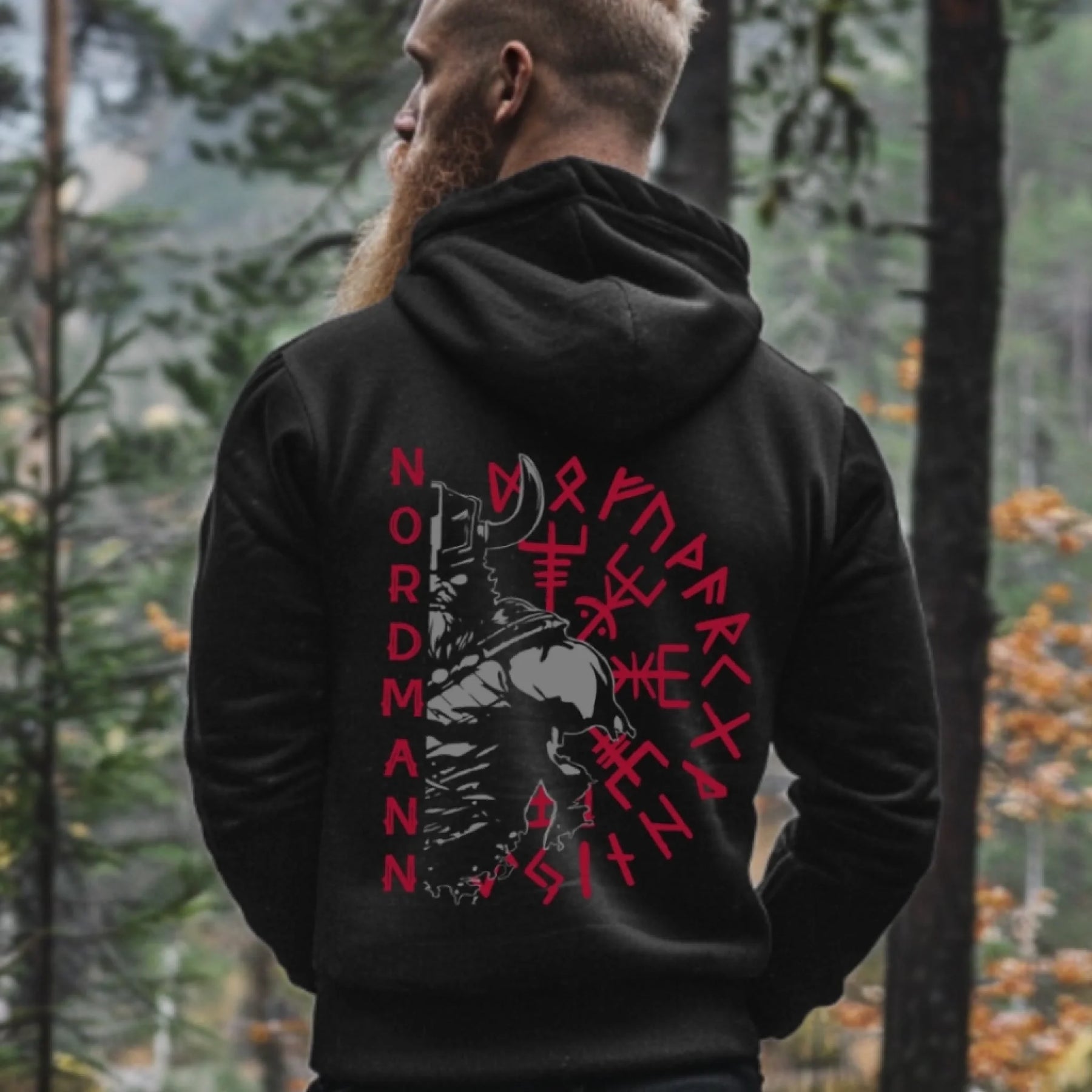 Sein Name wurde im ganzen Norden gefürchtet und geehrt. Trage diesen Hoodie und spüre die Kraft und den Stolz des Nordmanns Arnulf!